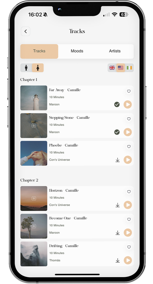 Our app, created by innovative record label Concrete Kïn, is designed with artists in mind, delivering unique soundscapes to bring calm and composure to your day while connecting you to the music of the artists you love.